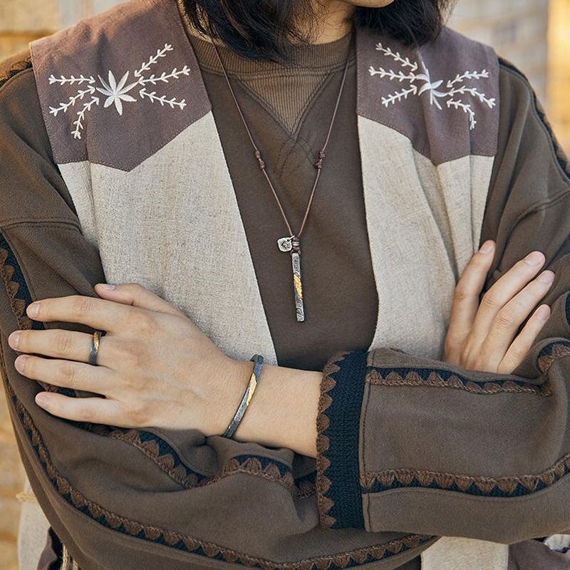 ジャケットやカーディガンなどの胸元に合わせるとオシャレ感を引き出してくれる秀逸なデザインペンダントです。